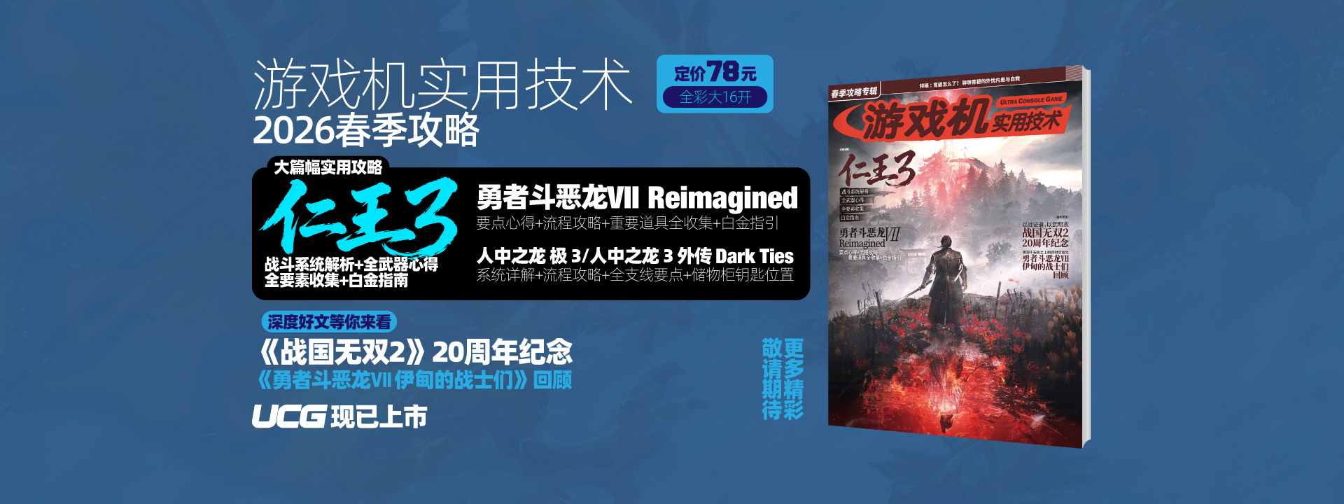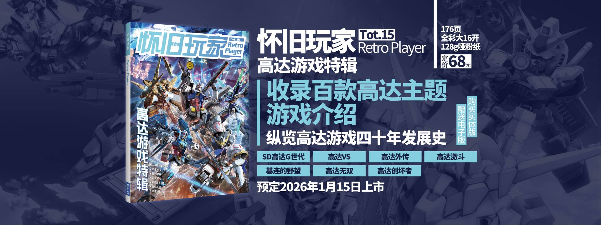 2026 正值高达游戏 40周年,UCG也在继此前大受欢迎的《怀旧玩家13》之后,为高达迷们带来了这本《怀旧玩家15 高达游戏特辑》,以回顾超百款游戏的方式,带领大家回味高达游戏经历的风风雨雨。从号称“高达教科书”的《G世代》到爽快刺激的《高达 vs》,从蕴筹帷幄的《基连的野望》到讲述别样故事的《高达外传》,从爆改机体的《高达激斗》到一机当千的《高达无双》在这里,你将看到时代的眼泪。