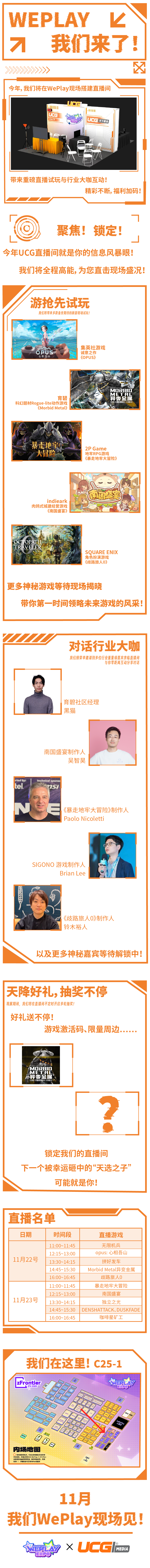 WePlay展会UCG直播间位置:上海世博展览馆H3馆C25-1展位