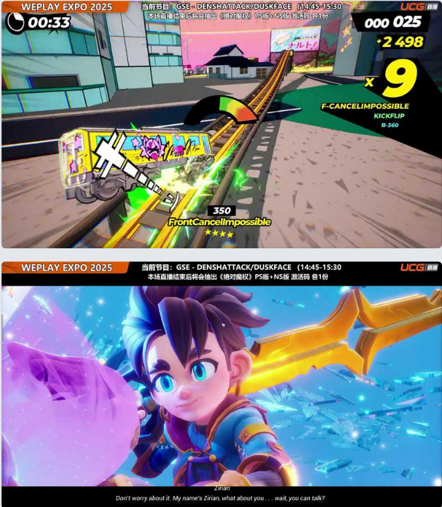 GSE这次带来了用电车躲避障碍并做出花式炫技动作的《DENSHATTACK》,以及故事围绕修复时间秩序展开的奇幻动作冒险游戏《DUSKFADE》。