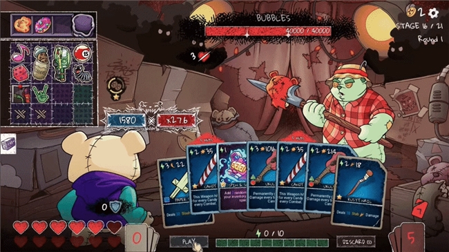 踏入格林布尔那充满神秘气息的黑店,这里是你通往“英熊”之路的补给站,格林布尔将为你提供一切定制牌组、增强策略所需的珍稀物资。你可以用战斗赢得的金币,购买强力的武器、技能卡、小熊糖果以及在此对现有卡牌进行深度改造——升级、移除、克隆或强化,赋予它们全新的战术效果。在这里,请尽情尝试无尽的组合,让每一次的抉择化为构筑完美牌组的基石。