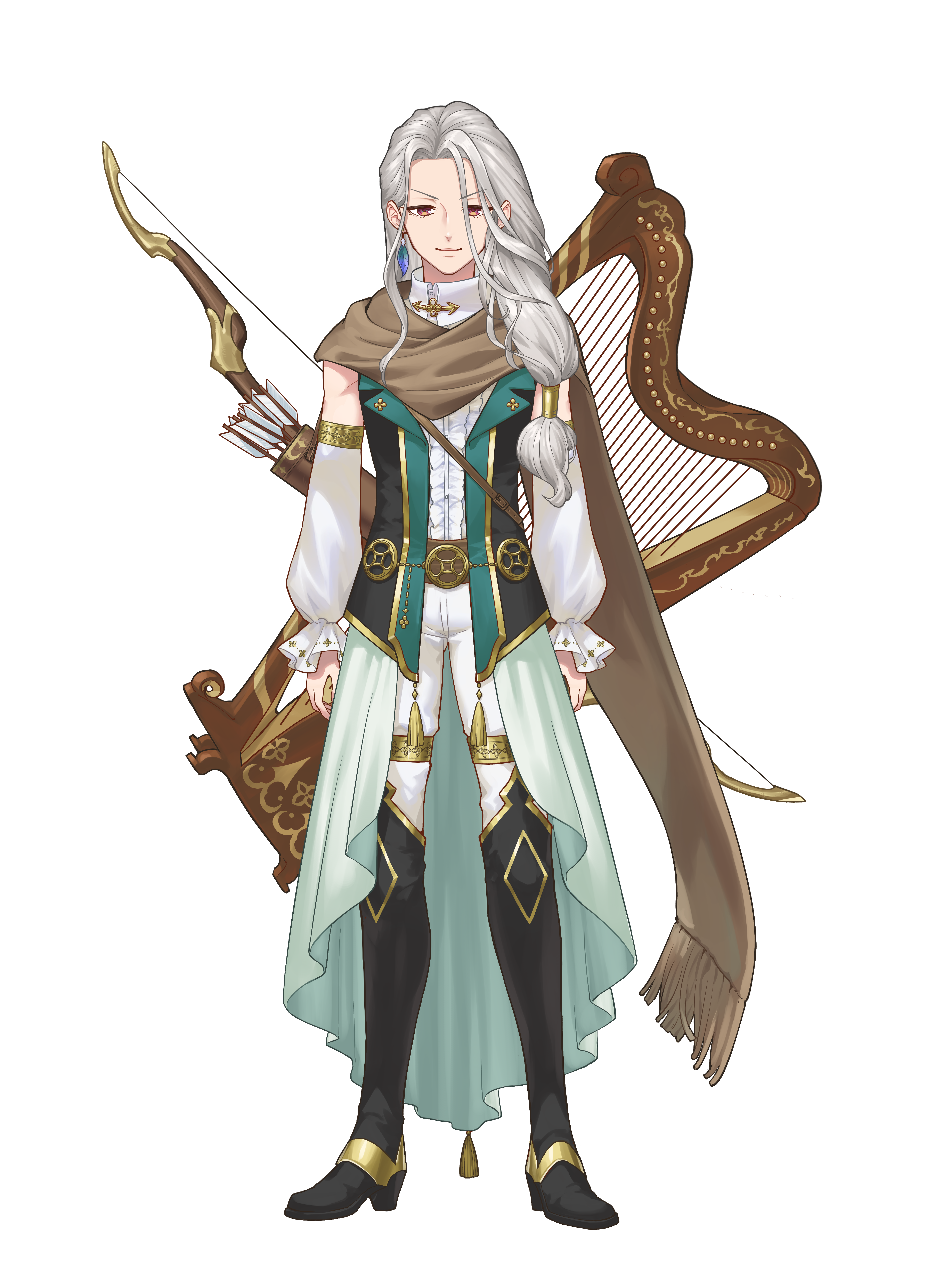 名门贵族之子,在王立魔术学级中比爱丽丝高一个年级。他性格飘然洒脱,总是随心所欲,但也有着厌恶人类、不愿让他人靠近的一面。擅长弓术与音乐,在街头即兴拨动竖琴自弹自唱时,吸引了不少女性粉丝。
