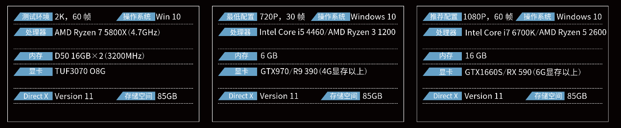 处理器:Intel Core i7 6700K/AMD Ryzen 5 2600