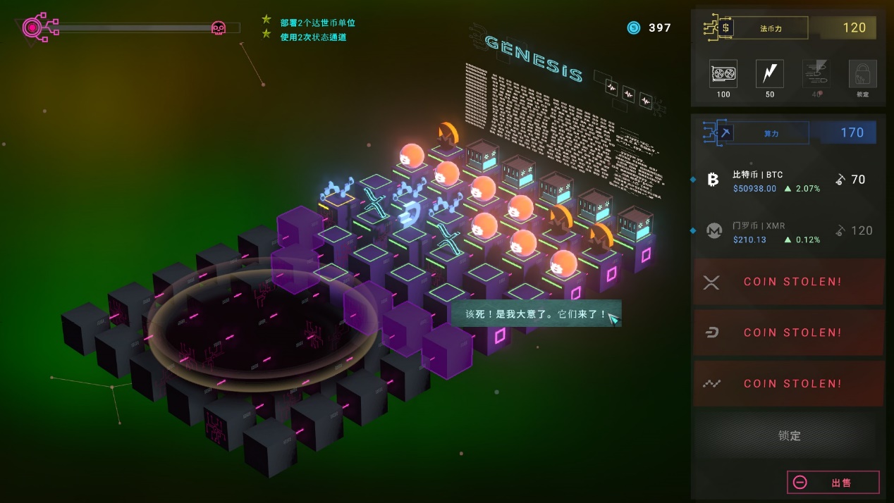 虽然本作并不需要掌握大量的加密货币知识才能游玩,但不可否认的是,想要深入体验到本作剧情以及深切感受那种赛博朋克风格的醍醐味,最好还是要有对加密货币拥有最基础的认识,否则可能就会对其中的文字对话一脸懵,只能猜个剧情脉络,也体会不到其中黑客大战的艰辛——当然,纯粹将之当做成一款夹着了部分小游戏玩法的塔防类游戏来体验,也颇具趣味就是了(仅限于玩法)。