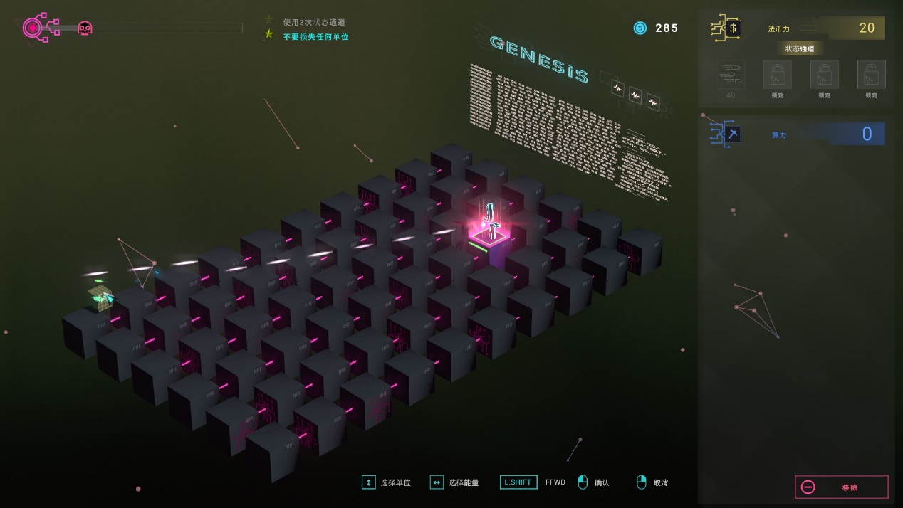 当战斗期愈演愈烈,玩家要做的事情也会随之变多,一方面需要合理安排“兵种”守住各条路线,一方又要留意场上掉落的蓝币(可用以购物)、算力的数量、格子的分布、场上突如其来的特殊陷阱或障碍。个别精英怪的出现,以及被击溃后反而分身成更多小个体的特殊敌人等,都足以让第一次面对该状况的玩家手忙脚乱,十分考验临场应变能力。