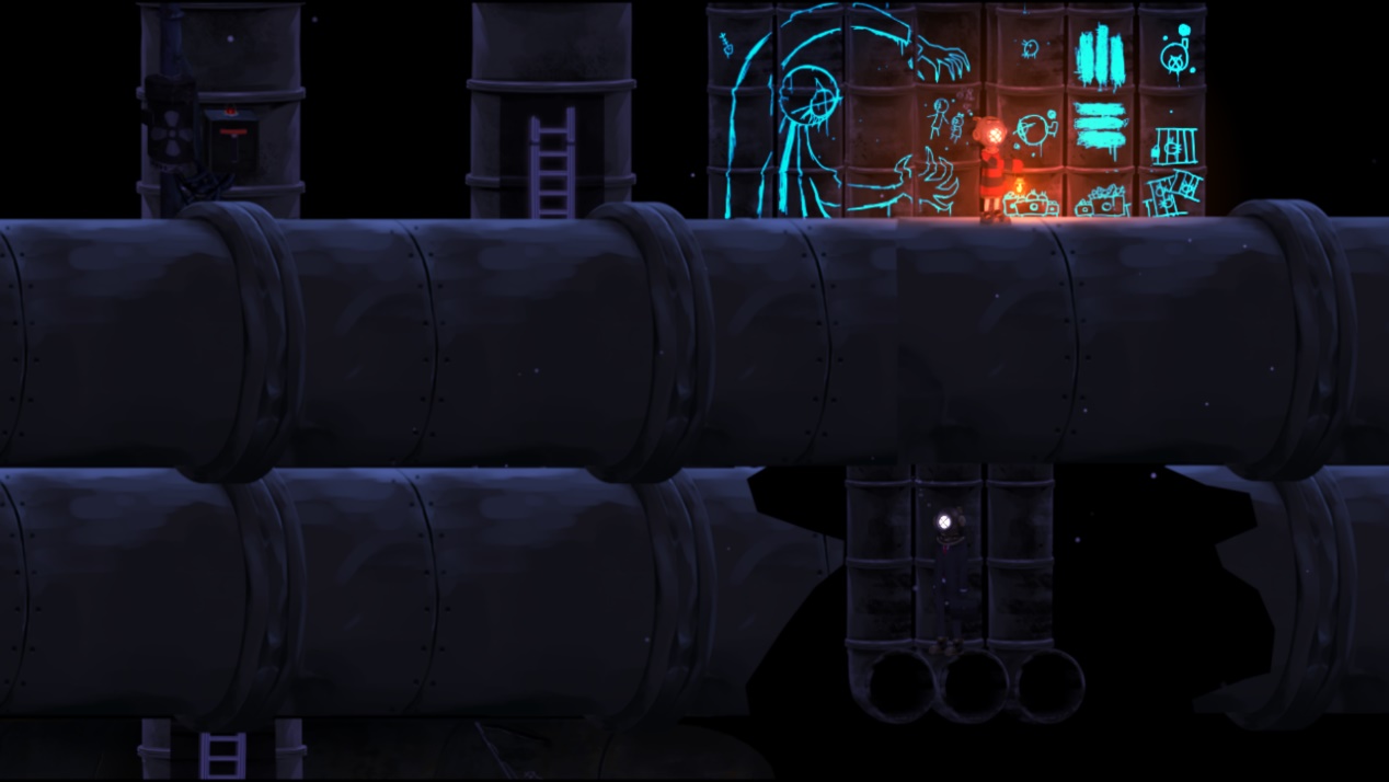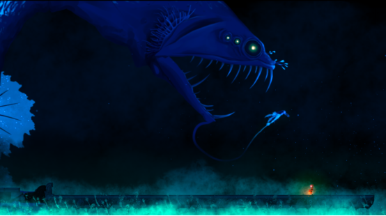 角色的操作非常简单,利用方向键、互动键、菜单键就能控制主人公完整地体验游戏的全部内容。和NPC对话、触发机关、攀爬和跳跃都是用互动键完成。而主人公的提灯除了能在水底提供照明外,还有有燃烧效果,用来烧破渔网、让发动机短路、点亮灯泡、吓退敌人,甚至到最后结局的选择,也离不开主人公手上的提灯。