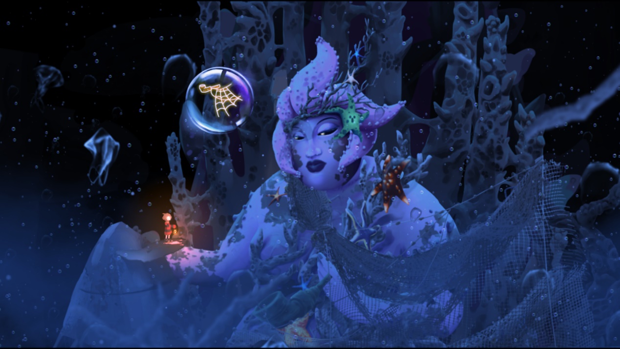 游戏不支持中文但毫无影响,因为游戏内没有一句台词,玩家只能通过对场景物品的探索和NPC与小男孩交流时出现的气泡图案来揣摩意思。游戏里小男孩的提灯象征着生命和希望,残暴的变异海兽、弹吉他的章鱼哥、懊恼的白衣男子、无情的神秘组织员工、向你吐舌头的海星、活跃的黄色小墨鱼,以及多个你救助过的各种巨兽,为空荡的海底增添了丰富的生命元素。