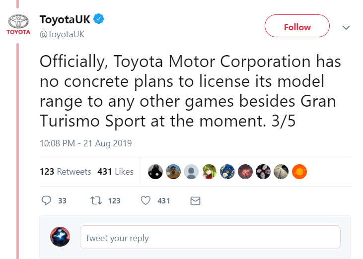 去年9月21日,丰田官方在社交媒体上宣布,将停止与除Polyphony Digital以外的游戏开发商的一切合作。