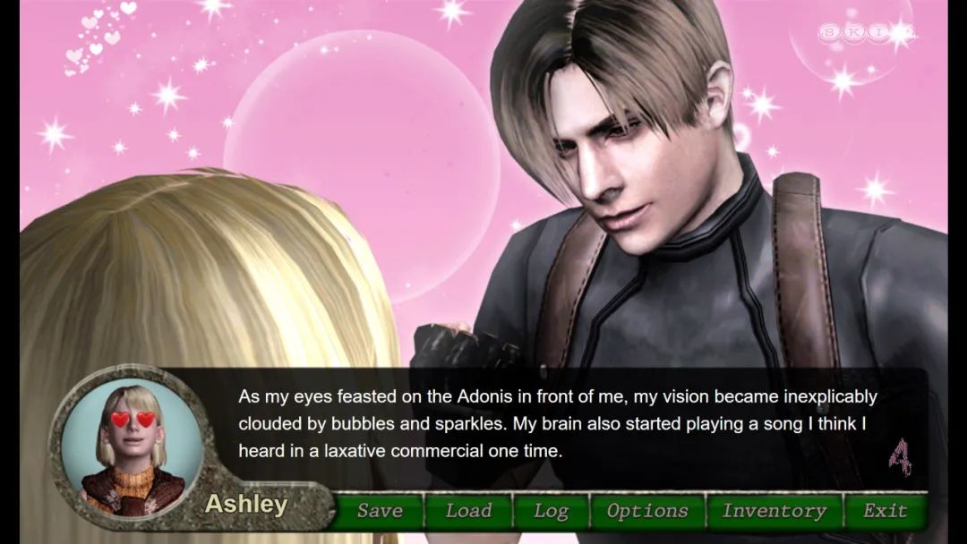 艾什莉眼中与里昂初遇时的场景,满眼都是少女粉红