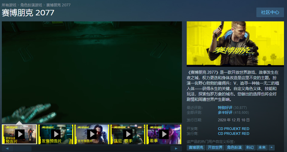 至于近期的特别好评,除了是因为PC版的《赛博朋克2077》的确还是个能够正常玩的作品,游戏后续的一系列补丁更新带来的体验改善和打折以及舆论风波带来的预期下降,也让很多后来才玩上这款作品的玩家变得更加宽容。