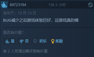 撇开参考价值极低,只能用来反映部分玩家群体情绪的Metacritic用户评分(无需购买游戏,任何注册用户均可打分),我们来看看起码是花了钱买游戏才能评价的Steam版。