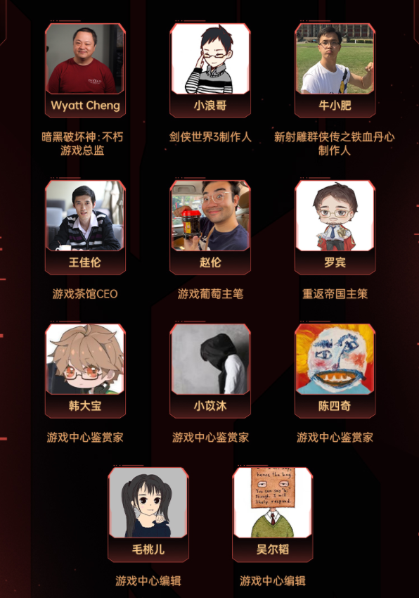 除了上述具体到个人的业界“老炮”,还有不少游戏媒体朋友参与,包括:机核网、游研社、游戏葡萄、JUMP、游民星空、游戏茶馆。