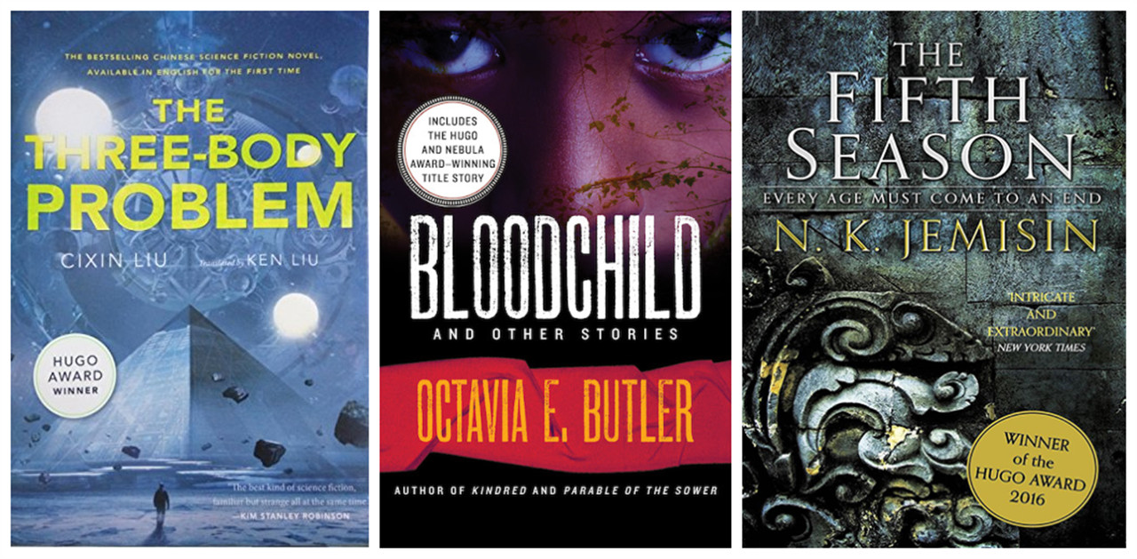 ▲“雨果奖”得奖作品封面,其中也包括了《三体》。