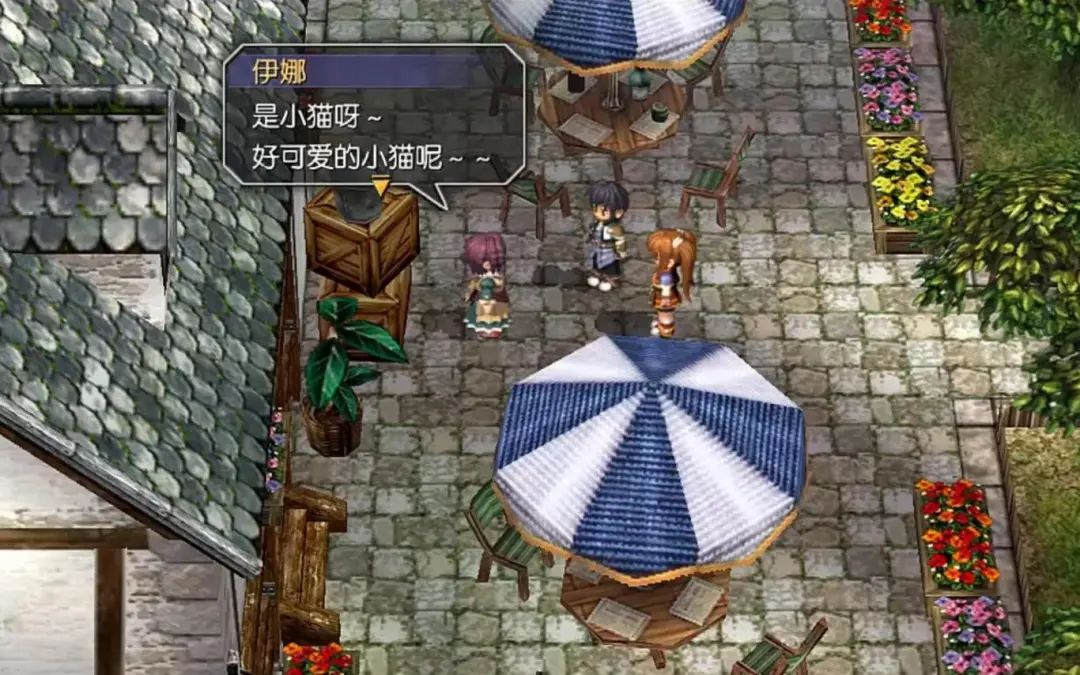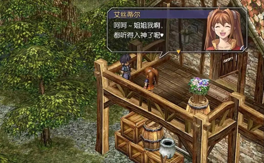 虽然是Q版小人和模糊的分辨率,但是演出效果一点都不弱,原因在于,Falcom充分利用了对话立绘、小人的气泡表情与夸张动作。对话框被特意扩大,将你的注意力从模糊的小人,转到大量丰富各异的人物表情和文本上,营造一种她们确实在面对面说话的感觉,从而掩盖技术力的不足。同时,又用屏幕震动和更大的字体,来表现角色音量和激动的情绪。这些方法有没有让你想起同样历史悠久的某些游戏?