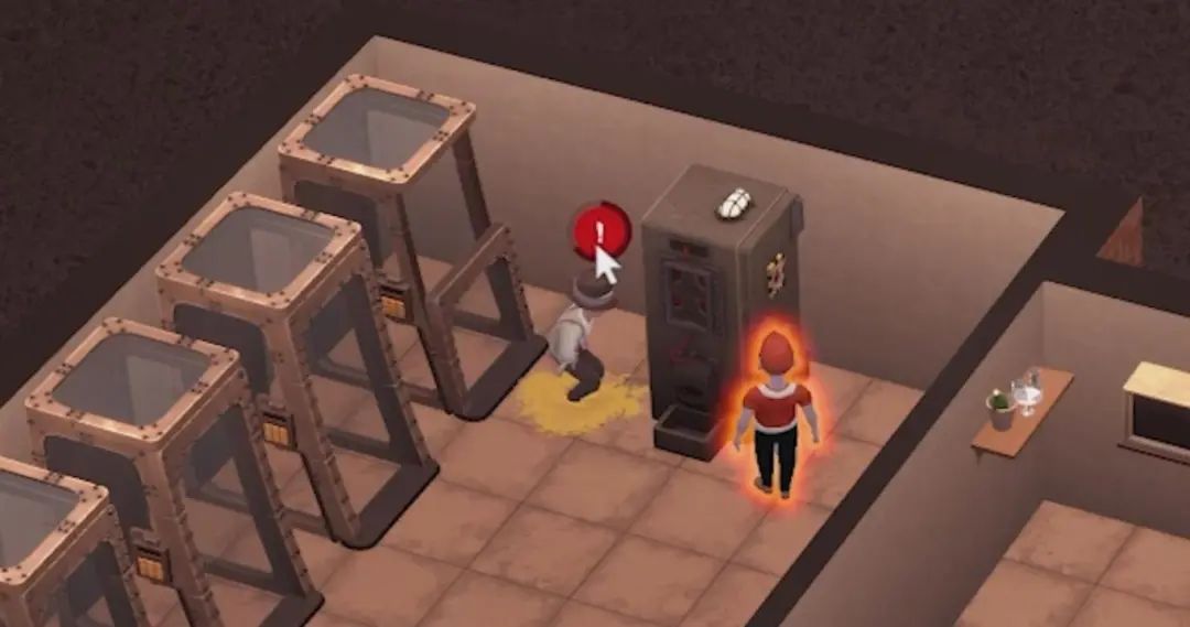 人物反应动画还非常细致。比如调查员发现你的后厨不符合安全生产条件,就Aieeeeeee~吸血鬼,人类被囚禁久了,被放出来会直接憋不住,当场失禁。