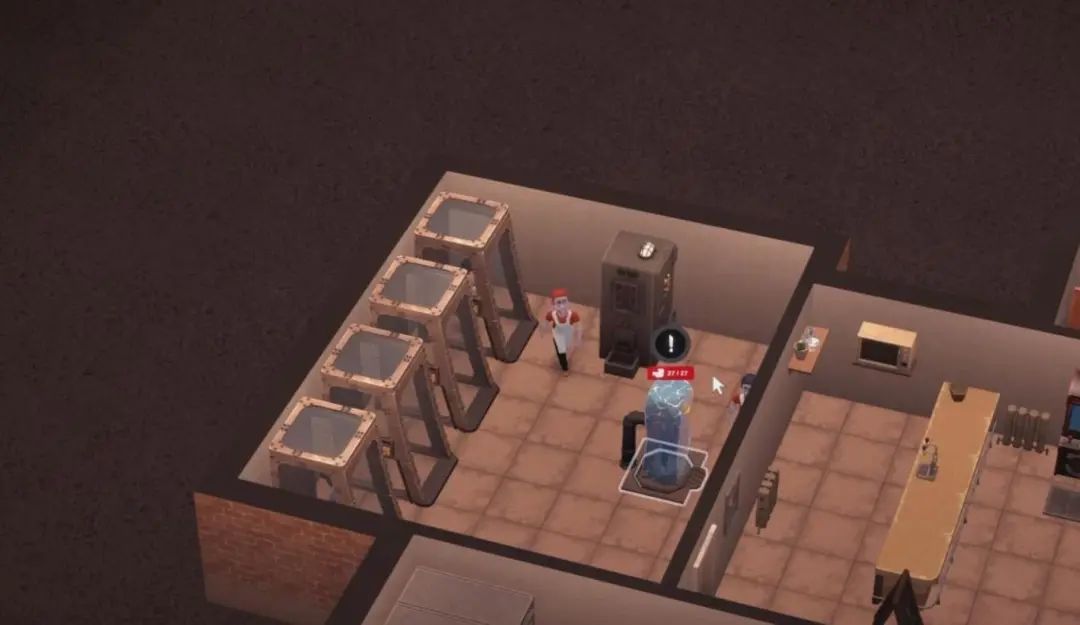 经营中还要做好保密措施。DEMO中最大的风险就是调查员,他们会发现服务员是吸血鬼,悄咪咪润到你后厨,你必须时刻提防,一旦暴露就得洗脑、催眠甚至直接吃掉他们。这种悄咪咪做坏事的“背德感”也体现了游戏的策略性,就是“分区”,可以限定区域是服务全部人员还是仅限吸血鬼。调查员一旦在大堂闹腾起来,就可能触发连锁反应,因此要在促进销量的客户动线和保密性之间做好平衡。