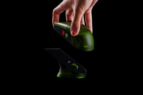 八位堂RetroR8 X版 绿透鼠标同样令人惊艳,搭配充电与信号增强二者兼具的无缝贴合底座,对称设计不仅贴心地支持左右手双模式,对4个宏定义侧键设计致敬Xbox的ABXY功能键。不仅如此,其搭载的PAW3395感应器和凯华白刃微动开关,使得这款鼠标在具备复古美学的同时,也拥有了强大的实战能力,足以应对各种复杂的游戏场景。