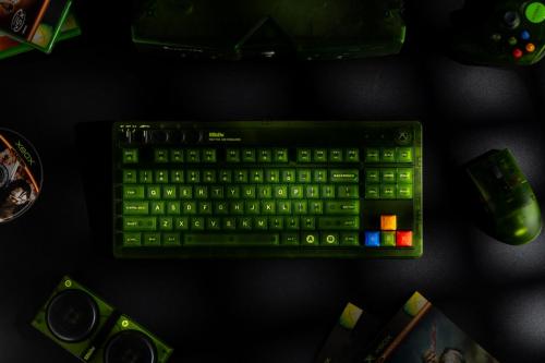 八位堂Retro87 X版 绿透机械键盘,搭载经典的复古旧式机舱控制台,仿佛将用户瞬间带回到那个充满激情与梦想的年代,给用户满满的实操感。双层水晶方向键和呼出Game Bar的功能键,每一处细节都深深致敬了Xbox游戏元素。半透水晶键帽+UV哑光涂层,触感似沙似雾,搭配RGB复古灯效,让人仿佛置身于迷雾之中,执着地追寻着真理的光芒,外观颜值气质出众,为你桌面添加一抹亮色。
