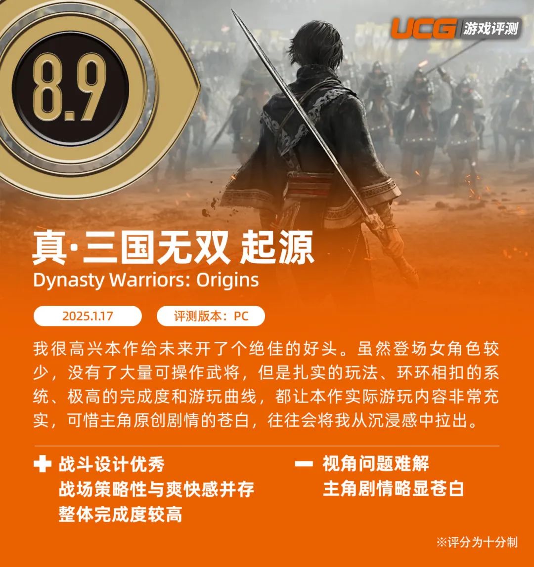 感谢Koei Tecmo的邀请,UCG得以提前游玩《真·三国无双 起源》完整版。犹记得去年前瞻时,我还是喜忧参半,但现在我只想开香槟。战斗取百家所长完全现代化,战场不仅演出拉满,高难度下也更具策略性,剧情有局限但有相当多戳我的细节。玩法、系统大变样,但体验确实回归了一骑当千的爽快,和大战场临场感的初心。