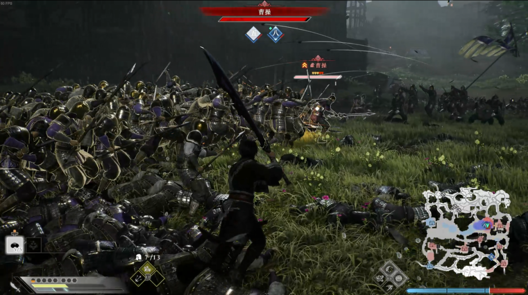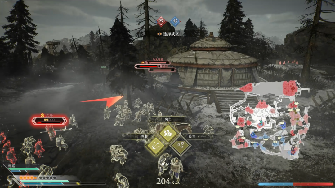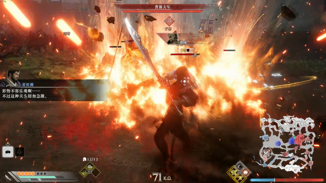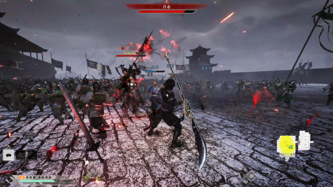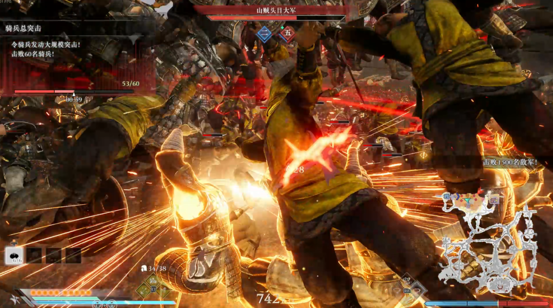 代价就是,后期到更大战场的时候,帧数确实会掉的比较多,但因为人物、攻击、特效等屏幕信息很多,我需要集中精力观察辨别,掉帧并不会严重影响战斗体验。并且依然有视角问题,一旦人多就会非常杂乱。虽然有人物描边但是没啥子用,如果敌人士气高、小兵还发动特殊攻击那更是看不清。
