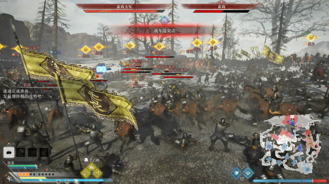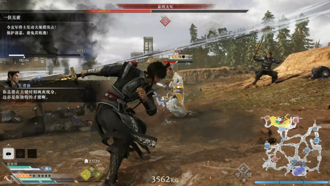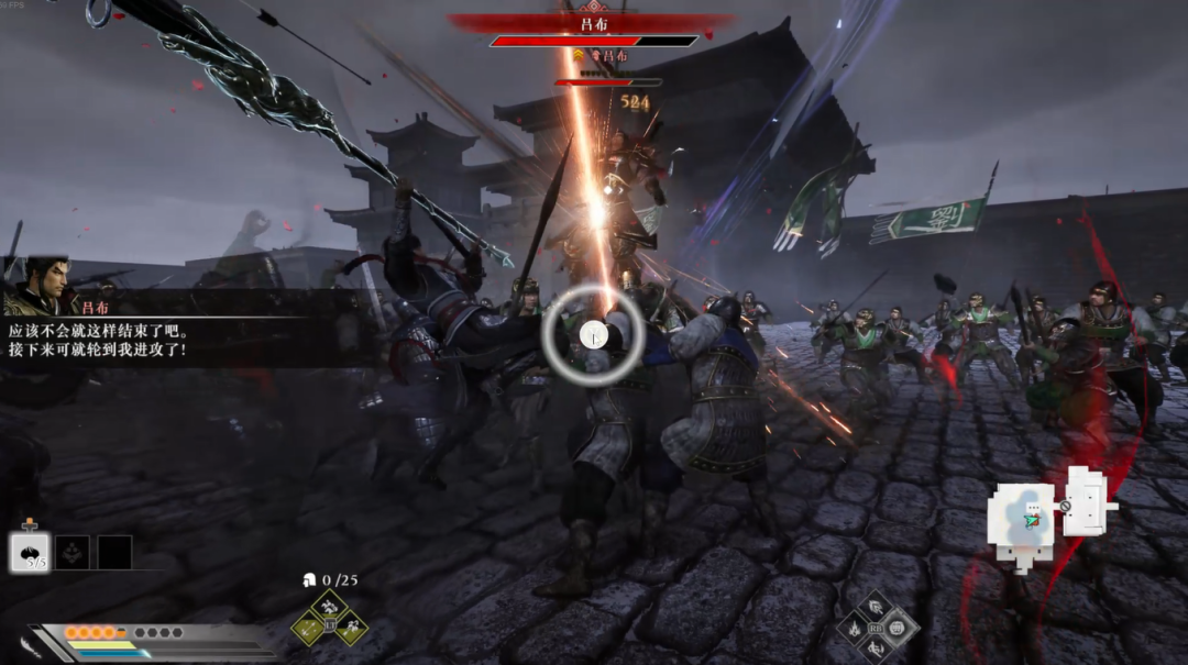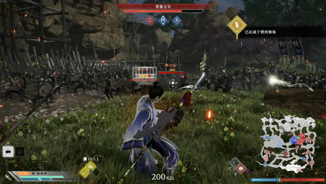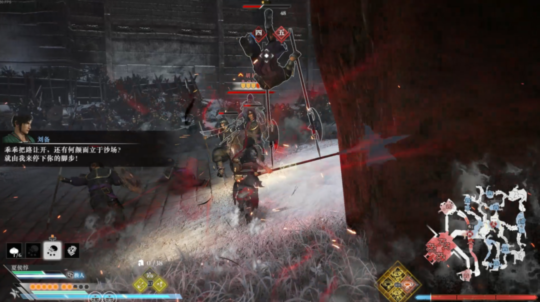代价就是,后期到更大战场的时候,帧数确实会掉的比较多,但因为人物、攻击、特效等屏幕信息很多,我需要集中精力观察辨别,掉帧并不会严重影响战斗体验。并且依然有视角问题,一旦人多就会非常杂乱。虽然有人物描边但是没啥子用,如果敌人士气高、小兵还发动特殊攻击那更是看不清。