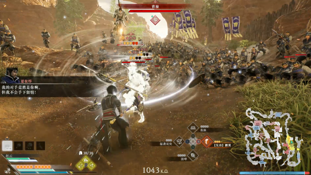 更别说系统和机制上也有很多容错空间。随行武将可以和你一起放武艺,能无消耗发动两人合体的激无双乱舞,无双槽满了还能换手,也能发动武神觉醒和真无双乱舞,等于是你多了一条可以随时间回复的命和无双槽。还有一些只有在高难度我才会动脑琢磨的技巧,比如多段攻击,前面用看破回复斗气,最后一段弹反,让收益最大化。处决时考虑走位、时机,覆盖尽可能多敌人,破更多外功,连续处决。这些在一周目没必要但是高难度很实用的技巧,连同不断解锁的武器机制,构成了一条非常顺滑的学习曲线。