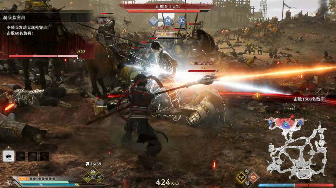 士气高,友军会得到强化帮你分担战线压力,足够高时你甚至能看到小兵追着曹老板打。士气低,敌将数值更高、外功更厚,杂兵也会更加频繁地发动黄光甚至红光危险攻击。友军更是会一处破处处破,你就得到处救火,但又因为敌人变强,击败会消耗更多时间,最后可能就得一个人面对大军团。提高士气就得占领据点、击破武将、奇袭,这些战术层面的优势都不是靠你一个人就能做到的,这时就需要你和队友通力合作,好好规划路线。