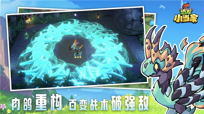 踏入《恐龙小当家》这片混沌与秩序并存的原始大陆,您将见证迪诺兽从生产者到征服者的无缝切换。这些造型从呆萌到抽象的伙伴,既能在火焰系熔炼矿石、草木系催生作物的生产线上充当全能劳力,更能在战场化身致命杀器:多角龙的击退效果强行打断敌人攻势,泥巴龙召唤的防御墙隔绝弹幕风暴,树角犀的反伤特性令巨兽自食恶果。通过交配室继承双亲特性,再借孵化室培育稀有战宠,您可自由组建流派——例如精选三只迪诺兽(可以一只主控+2个AI自动控制辅助),搭配击退与防御墙构建铜墙铁壁,或组合反伤与召唤技能形成人海洪流。